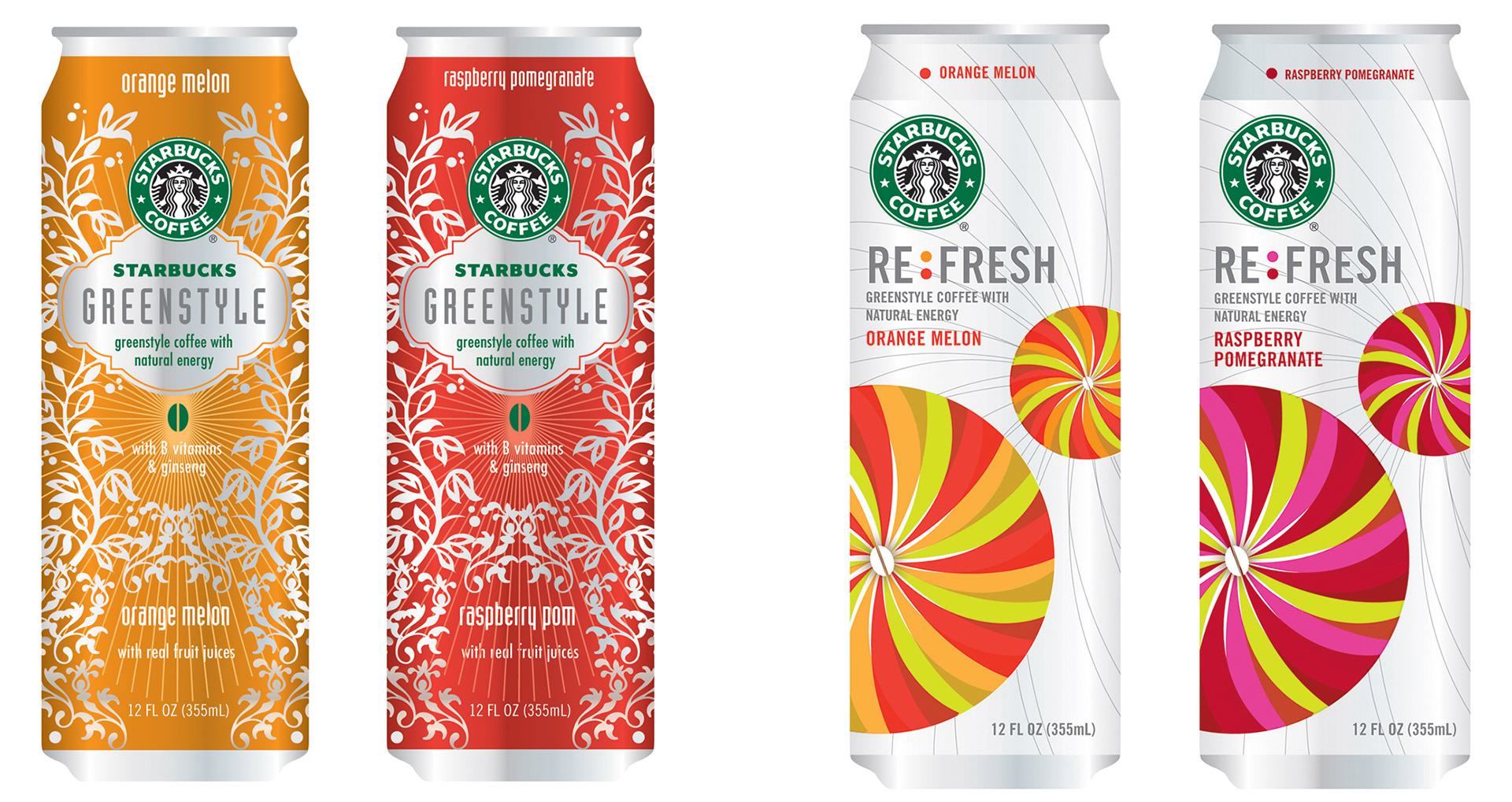 More concepts are designed than ever get produced. For Teavana, the concepts are for paper goods and a tea packaging system using cylindrical aluminum tins. For Starbucks, while on the CPG team, I designed bottles and cans.