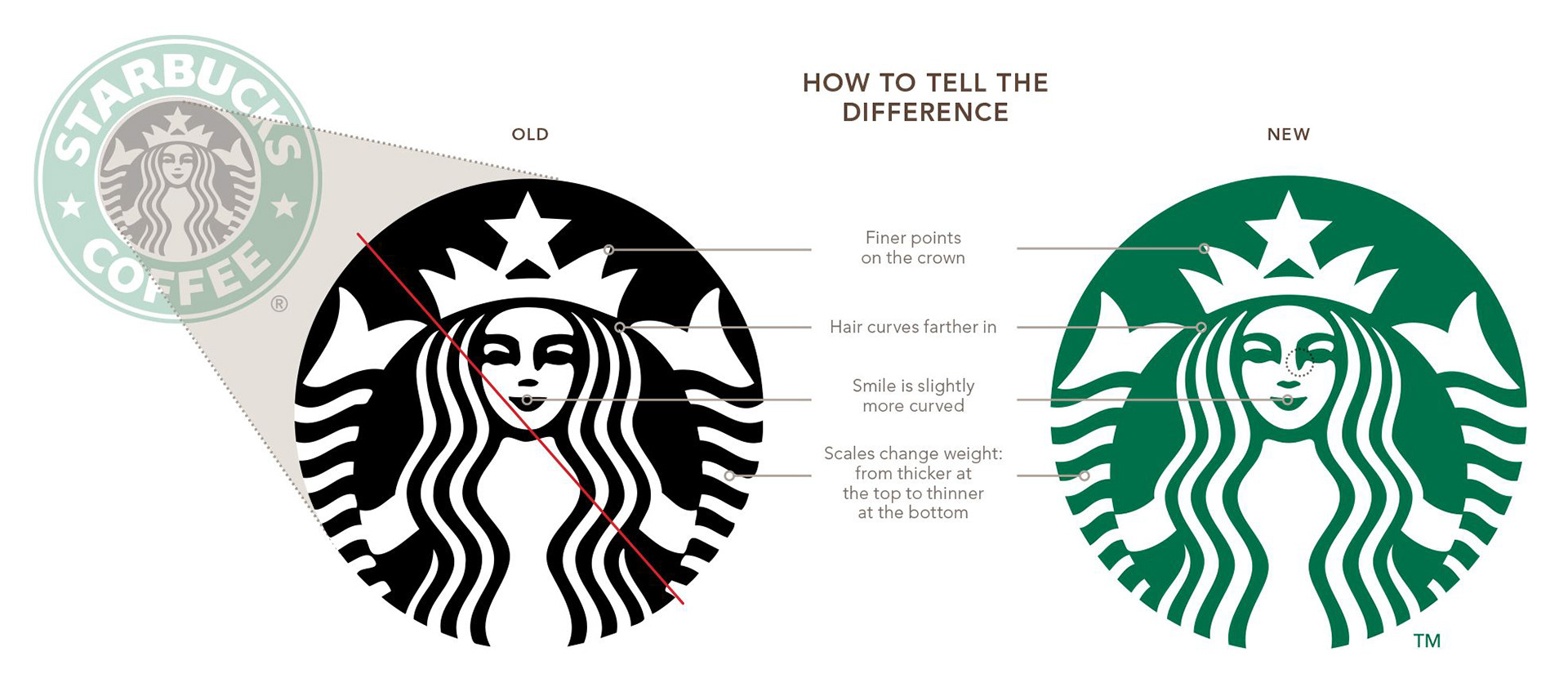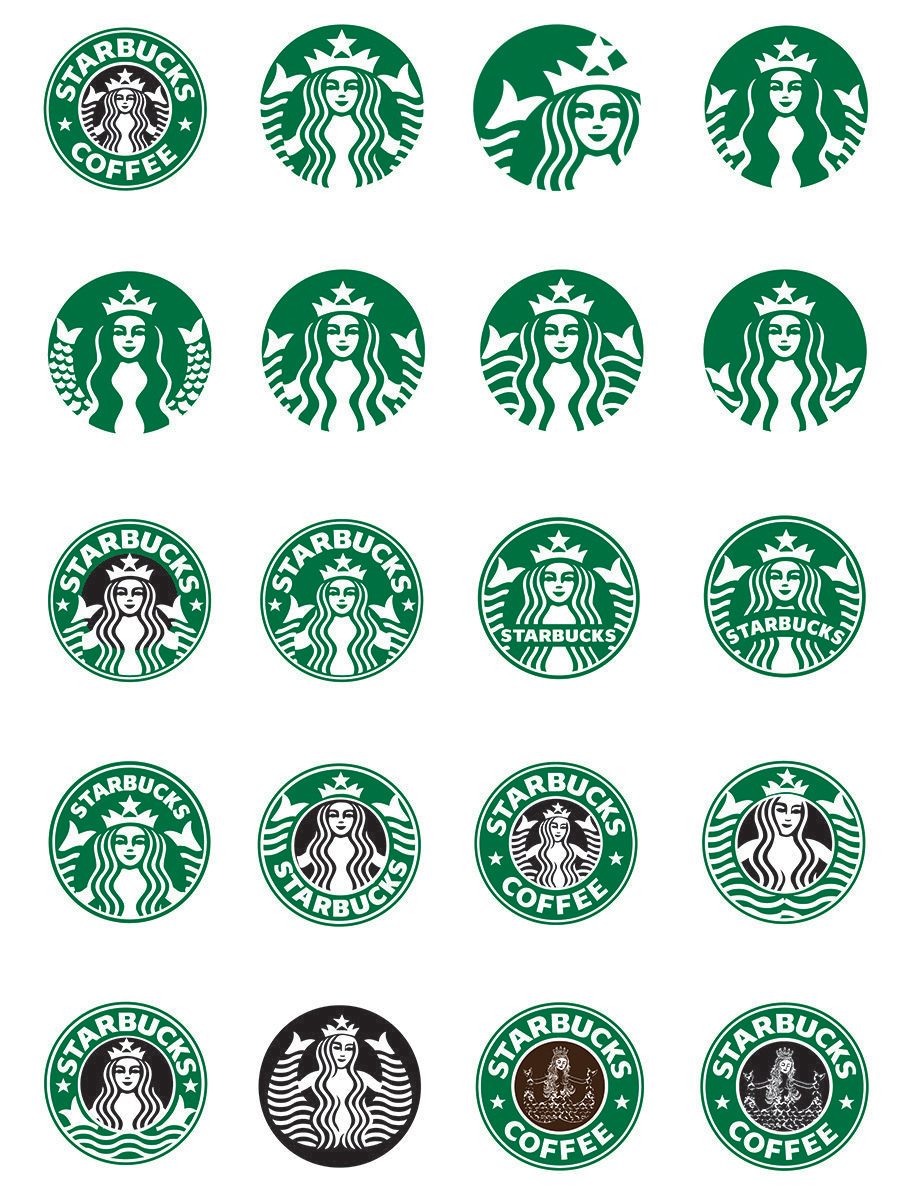 As part of the core team on the Starbucks brand refresh in 2011, our first task was to update the siren logo. Every aspect of the siren was considered–hair, crown, face, tail, scales, etc. No detail was too small, every idea sketched. Below is a very small sample of the many I generated. In 2012, as part of the Brand Strategy team, I focused on the visual expression for photography, illustration, color, materials and typography.